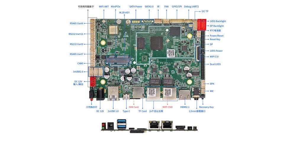 支持丰富的拓展接口,USB3.02,USB2.0*3,RS232*2RS485*2,SPP1,CAN1